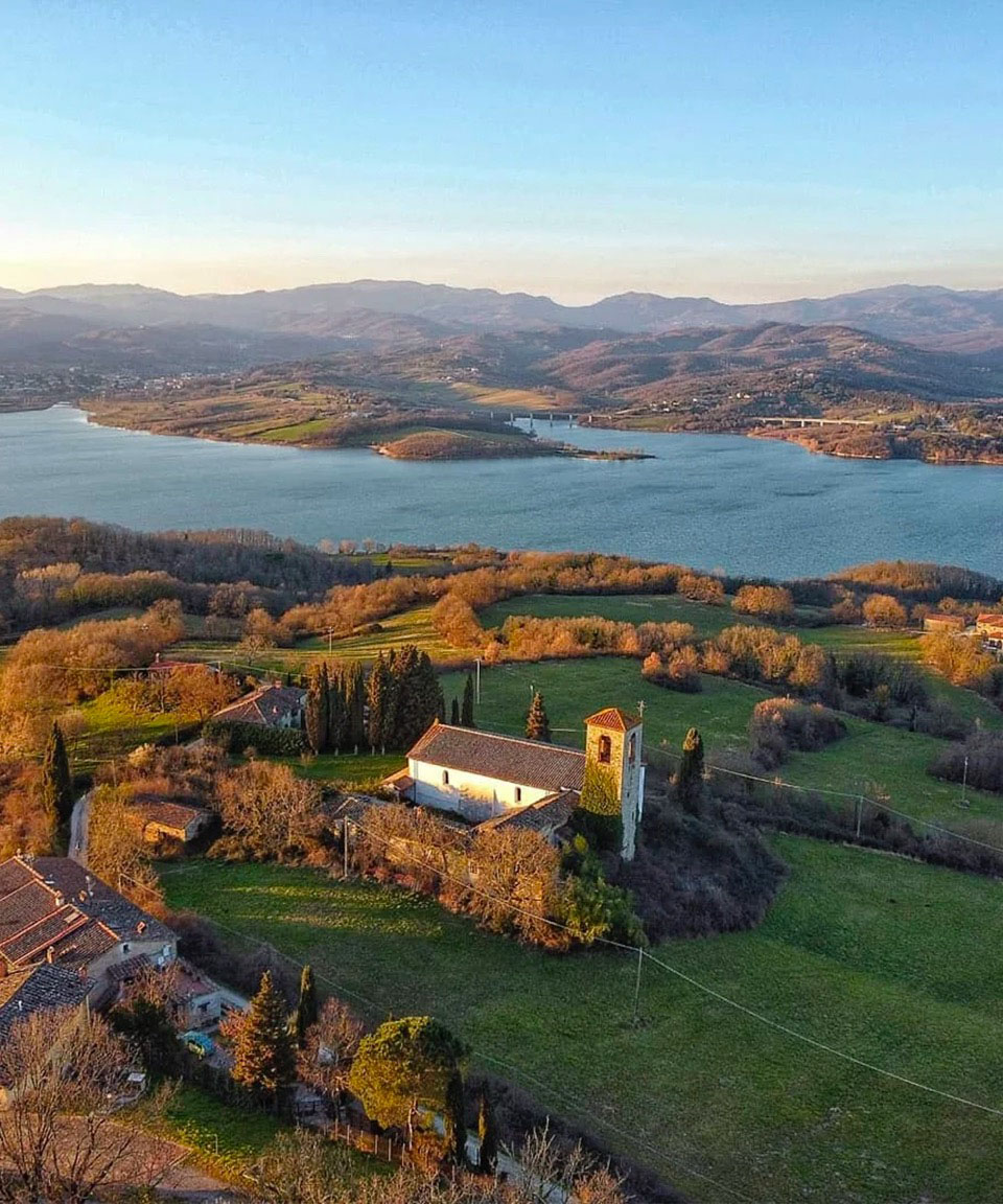 Con i suoi 5 km² di superficie, il lago ha l'aspetto di un vero lago naturale, incorniciato da colline, boschi e dalle celebri ville medicee del Mugello. In estate, le sue rive offrono stabilimenti attrezzati e ampie aree libere, perfette per godersi il sole e fare bagni rigeneranti. Per chi ama l'attività, il lago propone canoa, kayak, vela, windsurf e pesca sportiva, mentre i dintorni sono attraversati da percorsi ciclabili e sentieri ideali per trekking, jogging e mountain bike. All'interno del parco si trova anche l'Oasi WWF di Gabbianello, un'area naturalistica dove è possibile osservare germani reali, cicogne, gru e perfino fenicotteri rosa. Gli ampi spazi verdi pianeggianti rendono il lago una meta perfetta per famiglie con bambini, ma anche per chi cerca quiete e panorami tipici della Toscana.