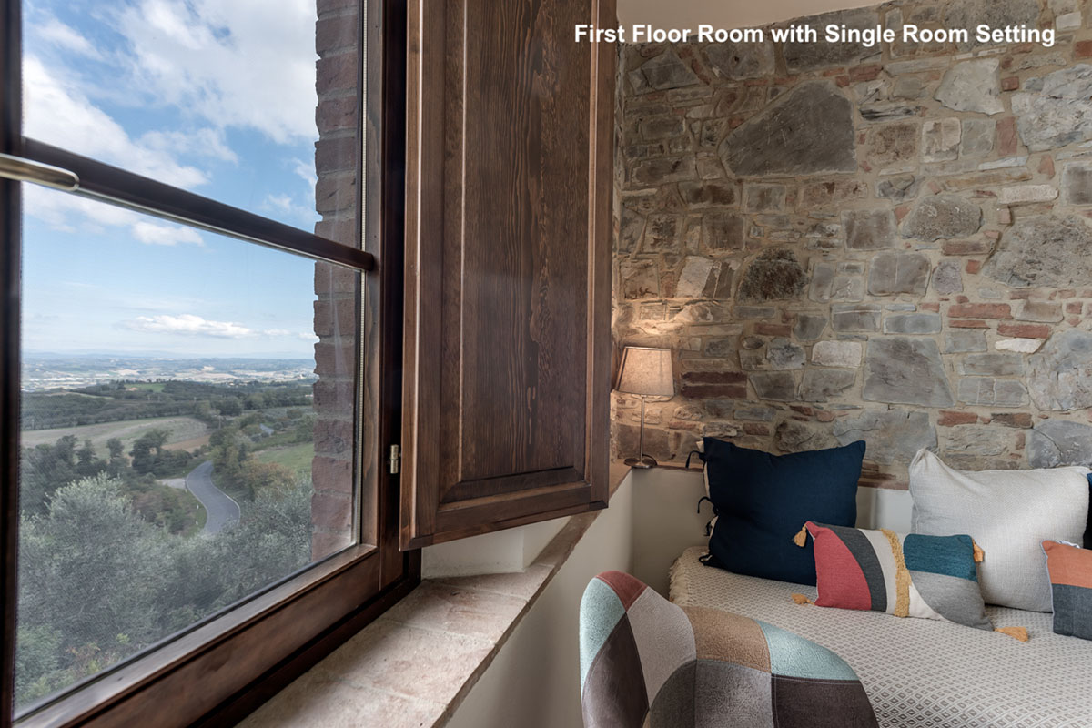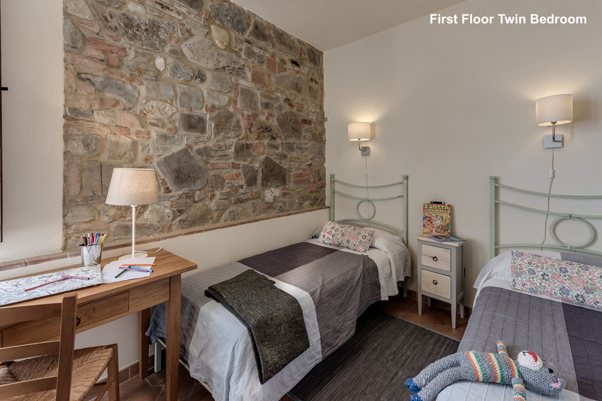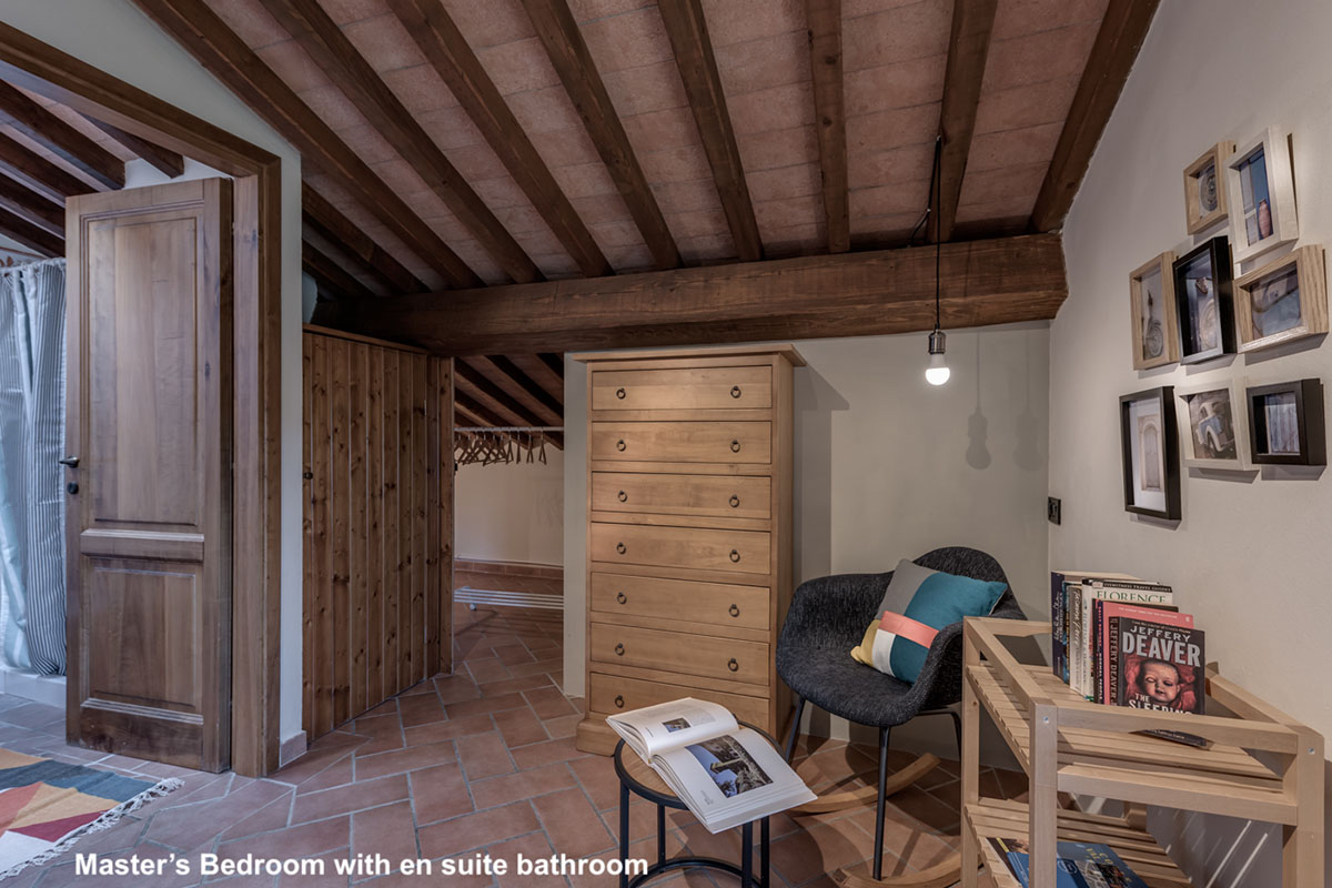 La camera matrimoniale si trova in mansarda ed è aperta sul vano scala con mezza parete (non esiste la porta). Le altre due camere da letto, situate al primo piano, hanno invece porte regolari.