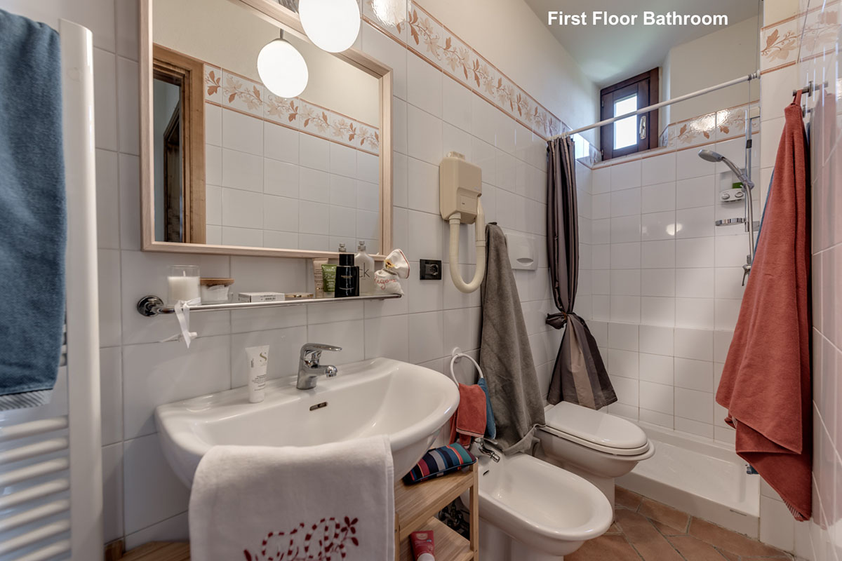 Bagno con doccia e asciugacapelli