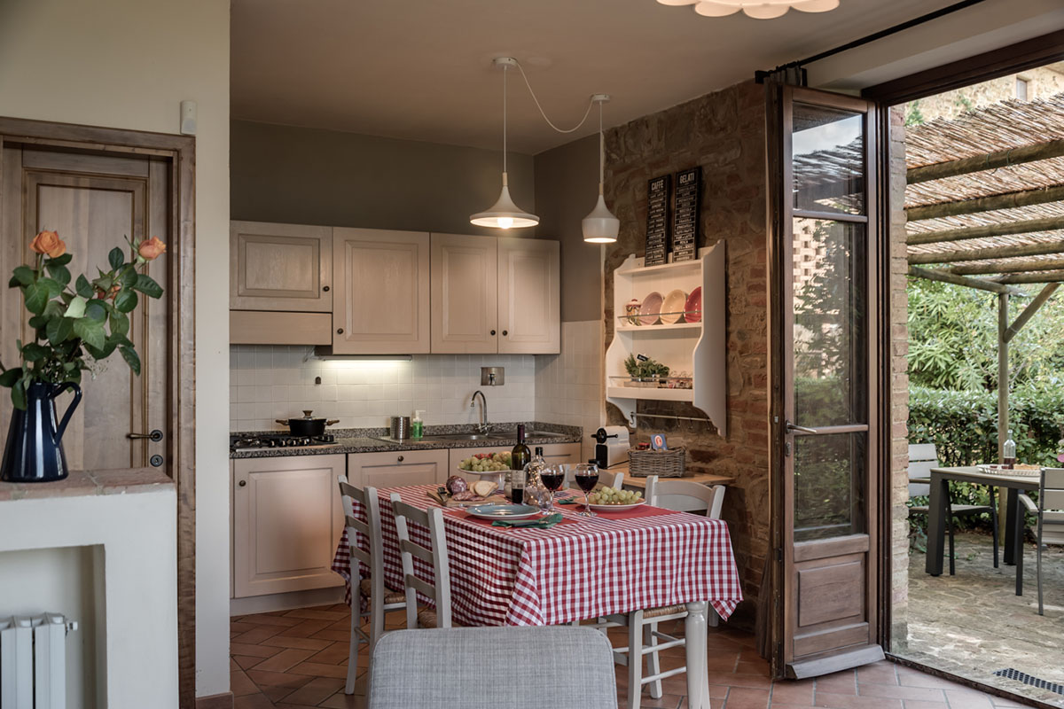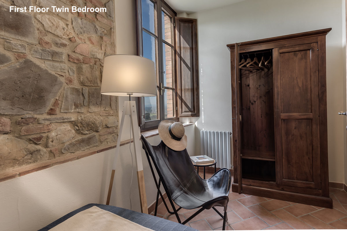 Questo appartamento grande e luminoso è il luogo perfetto per riposarsi e ammirare il panorama sulla Val d'Elsa. L'appartamento è situato al piano terra, primo piano e mansarda. Con 3 camere da letto, è un posto ideale per famiglie XL o con ragazzi teenagers che desiderano la loro privacy. Il soggiorno ha due ampie vetrate che si affacciano all’esterno: sul patio privato arredato e verso il grande prato con pouf colorati che costeggia la Val d’Elsa.