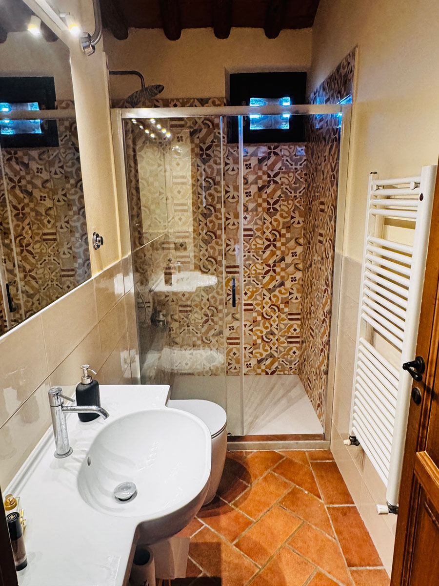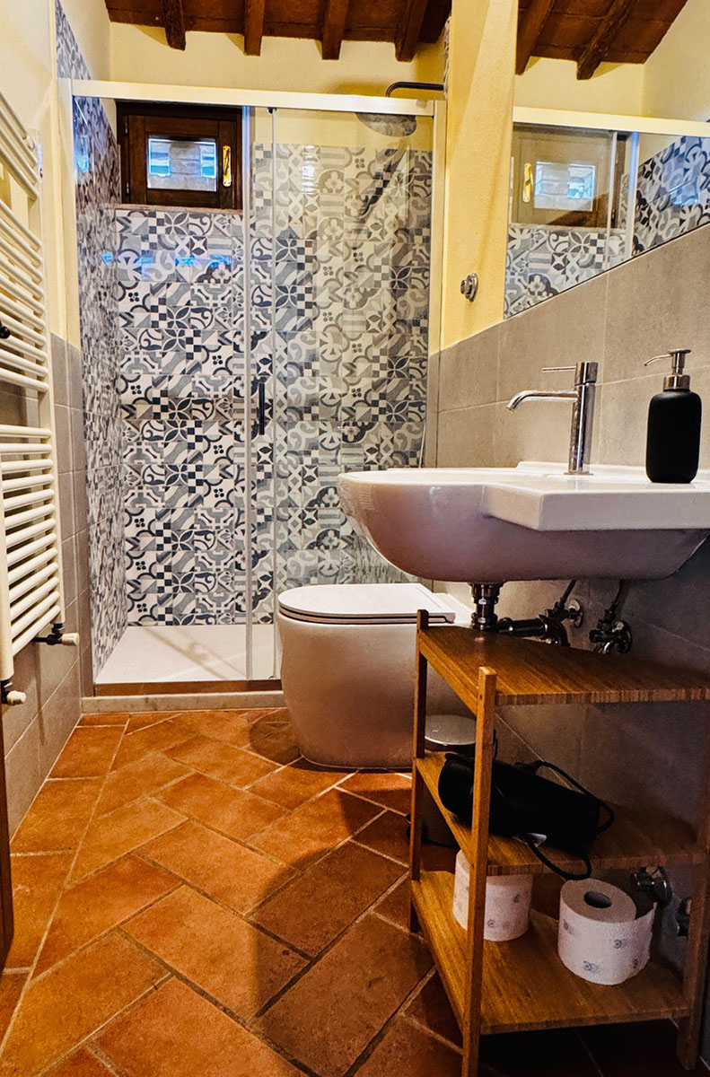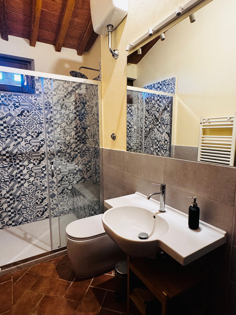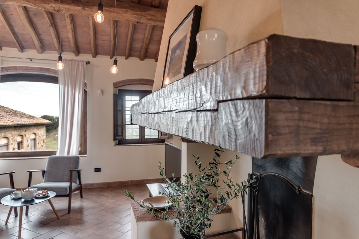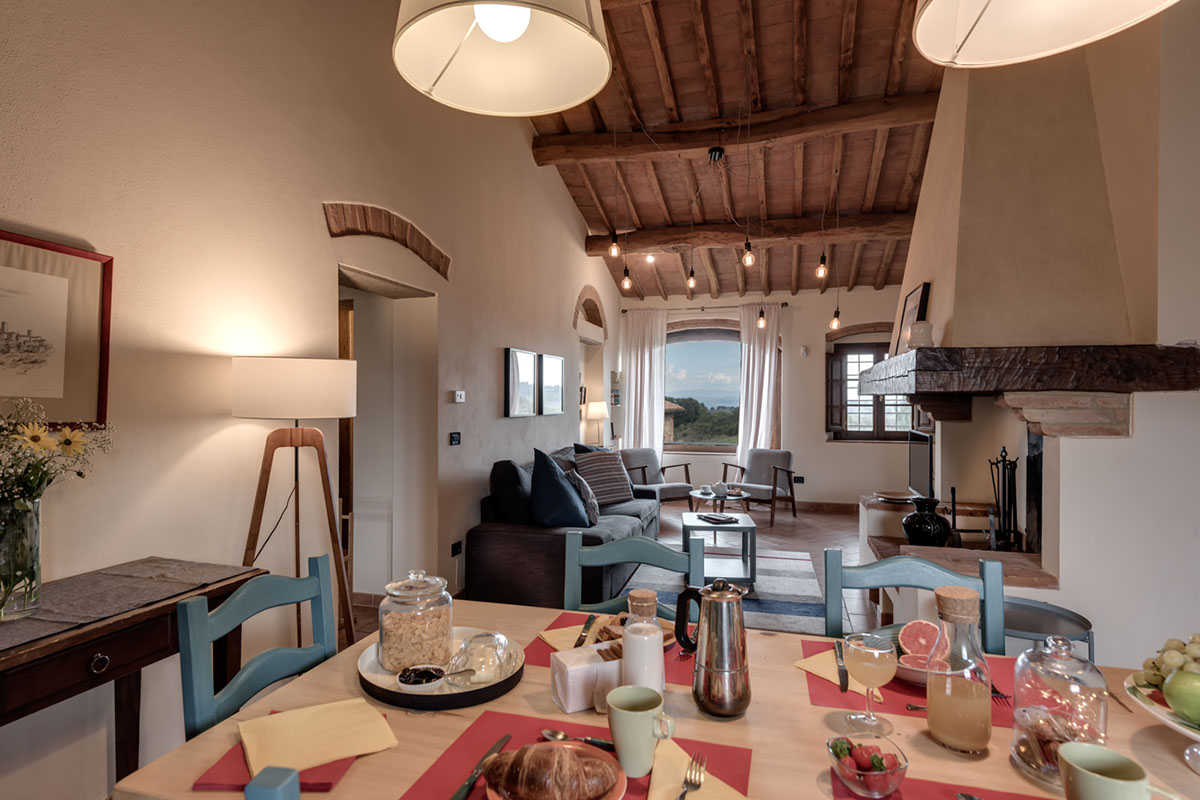 Appartamento che domina tutta la proprietà, il cuore della vecchia casa colonica. Travi in legno antico, pavimento in cotto, grande focolare. È spazioso e fresco durante l'estate e caldo e accogliente durante l'autunno. La vista mozzafiato dalla grande finestra ti permetterà di godere di un panorama unico. Vuoi prenderti una pausa dalla tua vita frenetica in città? Un gap per dedicarti alla scrittura, pittura o un corso di ceramica? Vulci è il posto ideale per te, soprattutto fuori stagione.