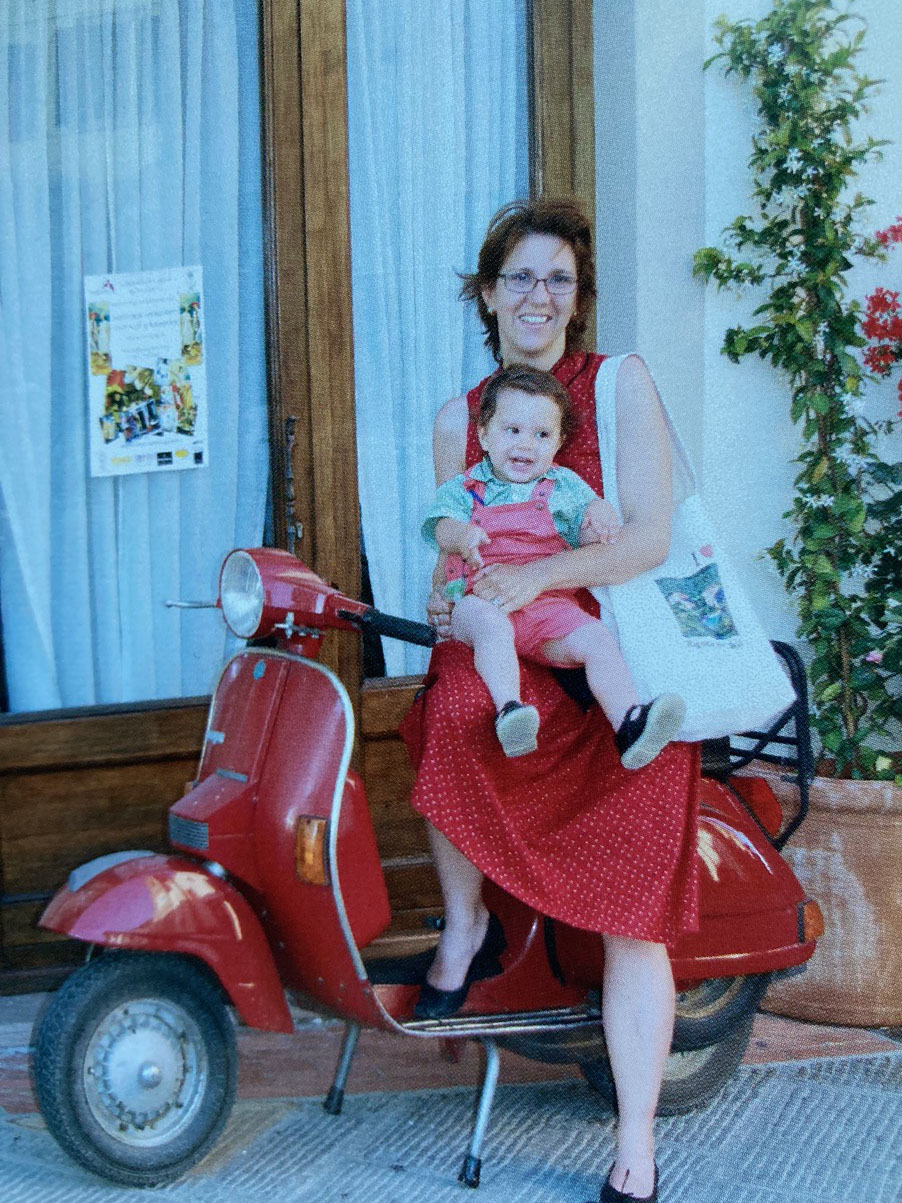 Che io e Luigi non fossimo una coppia ordinaria, si è capito sin dall’inizio! Al posto del banale anello con brillante ho ricevuto in dono per il nostro fidanzamento questa splendida Vespa 125 PX del 1986 di terza mano. Questo spiega la targa RE (Regio Emilia) dove ne io ne Luigi abbiamo mai abitato. Ci ha traghettato attraverso molte avventure, ha fatto con noi il viaggio di nozze, 6 traslochi, attrezzata con un meraviglioso cesto di vimini portava il pane fresco a Rigone, e ora, dopo un piccolo lifting previsto per questo inverno, partirà a breve per godersi la vecchiaia sulla costa dalmata. E io e Luigi con lei, si spera.